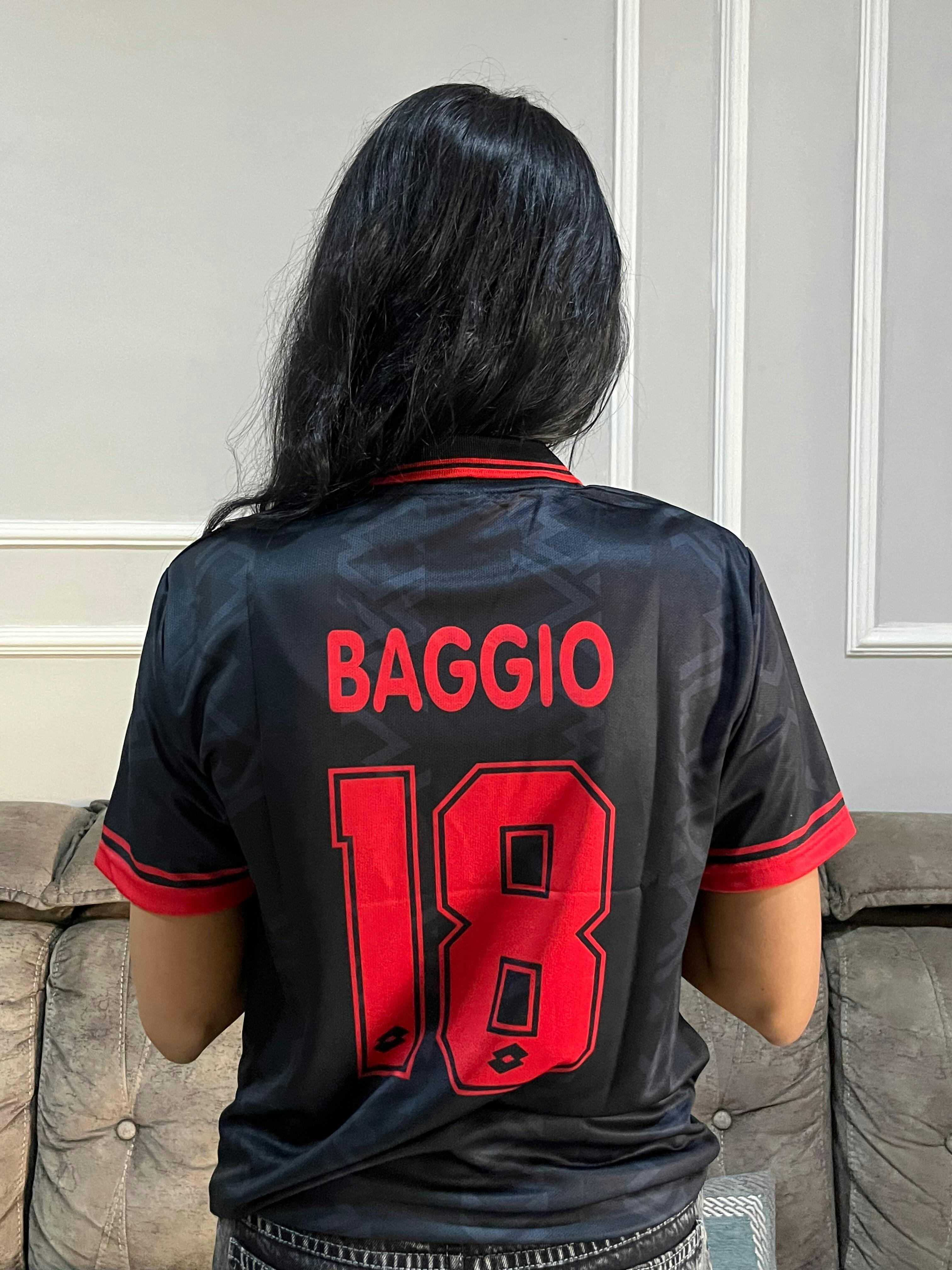 Nostalgia meets style: This fan-inspired AC Milan black retro jersey perfectly throws back to the iconic late '90s Lotto/Opel kits, complete with a black collar and striking red trim, making it a must-have replica for every Rossoneri fan!